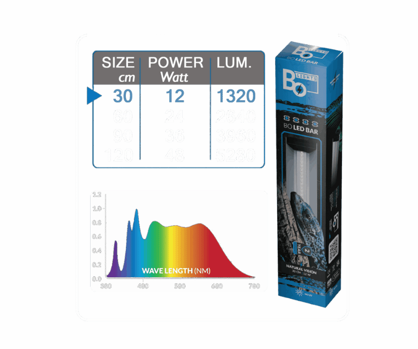 Die BoLights Natural Vision LED ist eine hochwertige Tageslichtlampe ohne UV-Anteil, die speziell für die natürliche Ausleuchtung von Terrarien entwickelt wurde. Mit hohen Kelvin- und Luxwerten sorgt sie für eine helle, realistische Lichtumgebung und bringt Farben sowie Strukturen optimal zur Geltung.