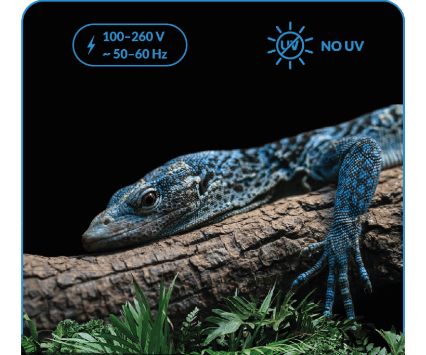 Die moderne Flicker-Free-Technologie garantiert eine gleichmäßige, stabile Lichtabgabe ohne Flimmern. In Kombination mit der robusten, spritzwassergeschützten Bauweise (IP65) eignet sich die Lampe ideal für den dauerhaften Einsatz im Terrarium.
