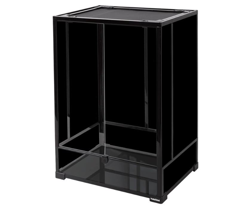 Das schwarze Glas verleiht dem Terrarium nicht nur ein elegantes Design, sondern reduziert auch äußere Reize – was den Tieren ein Gefühl von Sicherheit gibt und Stress reduziert. Die großzügige Lüftung über das feinmaschige Metallgitter sorgt für eine hervorragende Luftzirkulation, während die verschließbaren Türen eine einfache Handhabung bei gleichzeitig hoher Sicherheit ermöglichen.