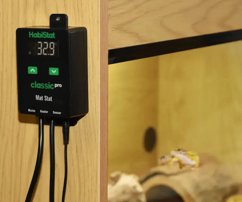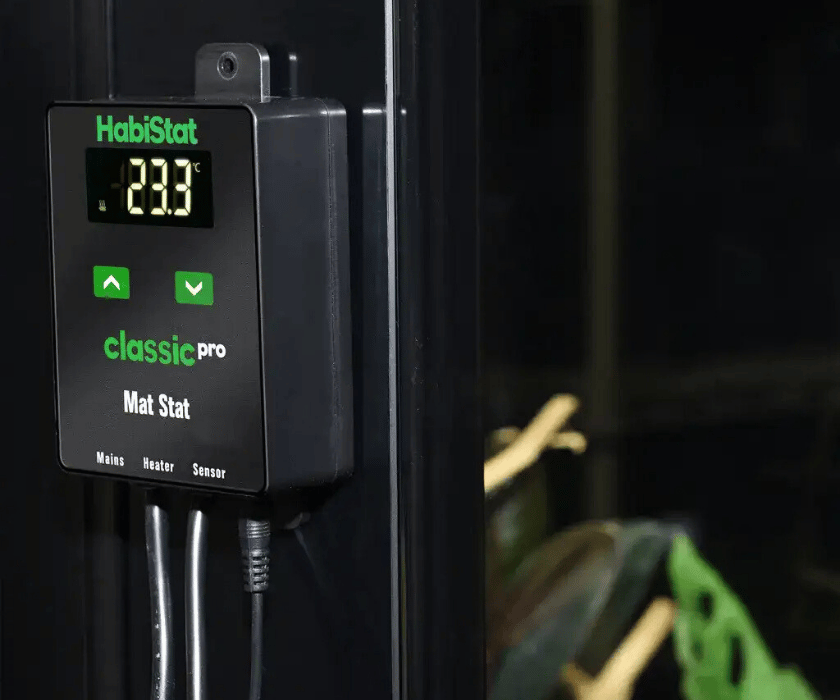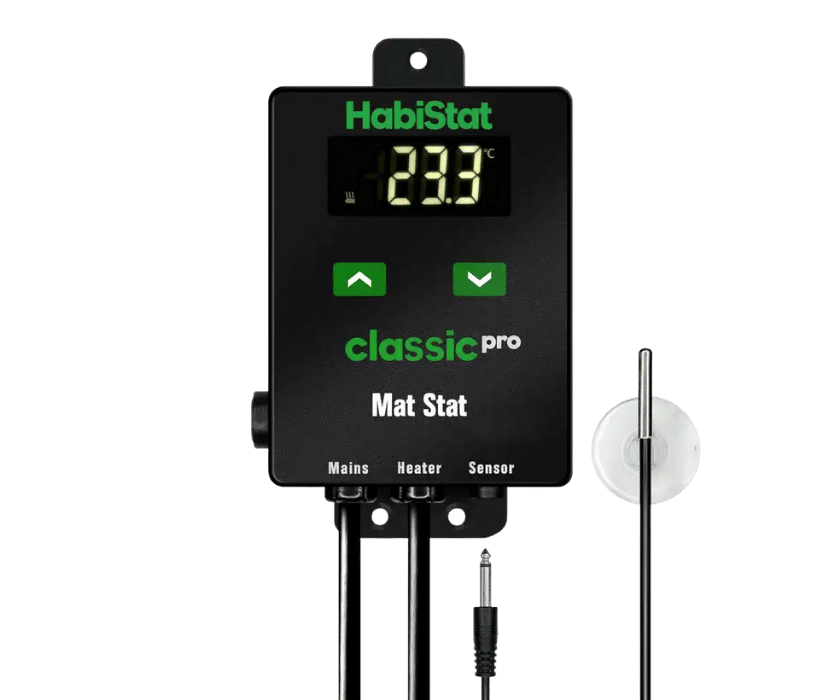 Der HabiStat Classic Pro Mat Thermostat ist ein robuster und leicht zu bedienender Ein-/Aus-Thermostat, der speziell für den Betrieb von Heizmatten sowie anderen Heizgeräten mit geringer Leistungsaufnahme, wie Heizkabeln, entwickelt wurde.