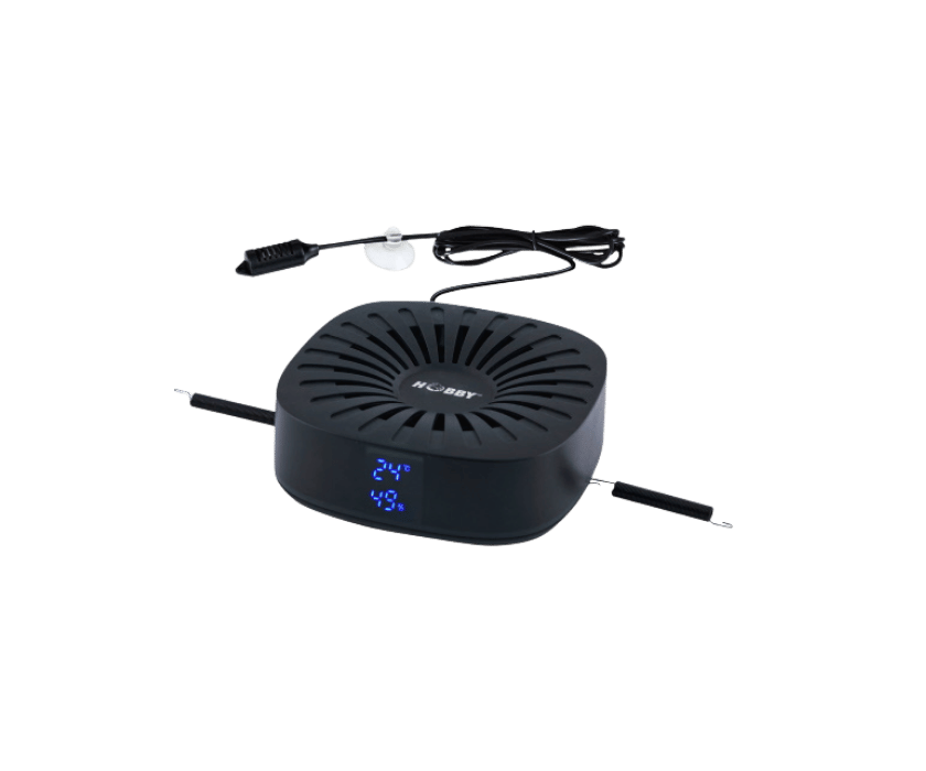 Der Terra Fan sorgt für eine konstante Luftbewegung im Terrarium und schafft somit optimale Bedingungen für tropische Reptilien und Amphibien. Ausgestattet mit einem integrierten digitalen Display sowie einem kombinierten Temperatur- und Luftfeuchtigkeitssensor behalten Sie Klima und Luftwerte jederzeit im Blick. Zwei Geschwindigkeitsstufen ermöglichen eine gezielte Anpassung der Belüftung an die individuellen Bedürfnisse Ihrer Tiere.