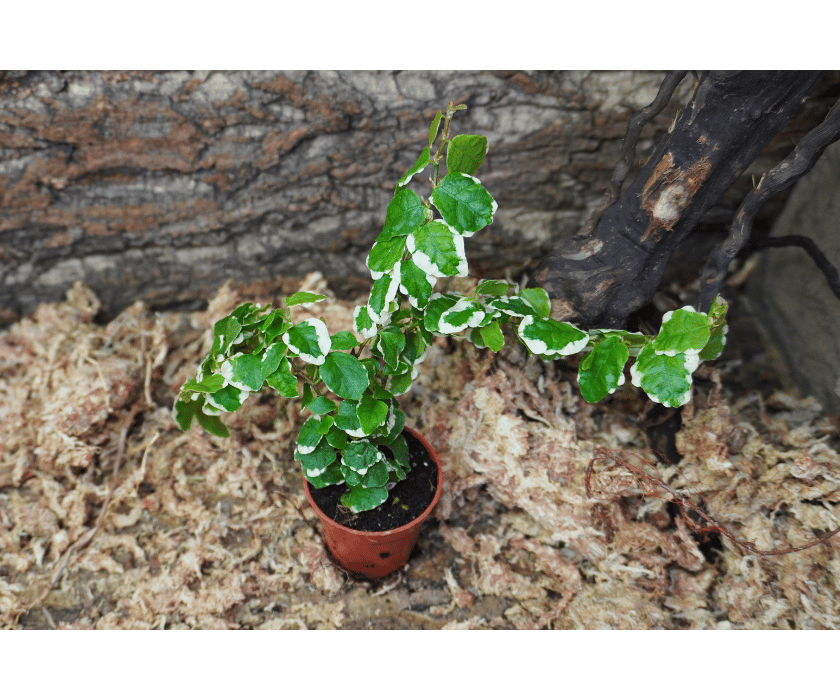 Ficus pumila ‘Sunny’ bevorzugt helle bis halbschattige Standorte ohne direkte, starke Beleuchtung. Das Substrat sollte gleichmäßig leicht feucht gehalten werden. Hohe Luftfeuchtigkeit fördert ein kräftiges Wachstum. Regelmäßiger Rückschnitt sorgt für eine kompakte, dichte Struktur im Terrarium.