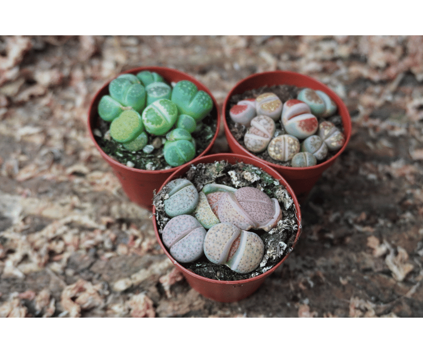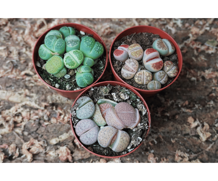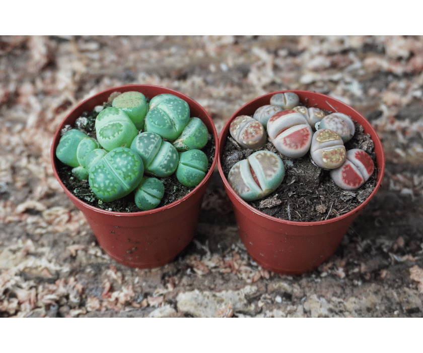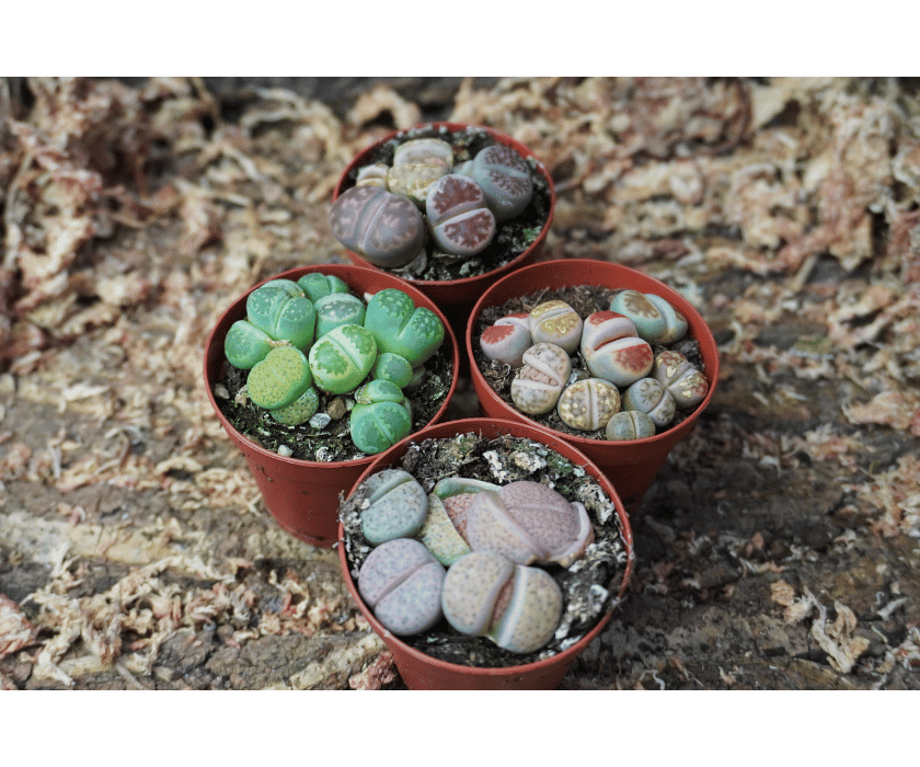 Lithops benötigen maximale Lichtintensität und ein stark mineralisches, sehr durchlässiges Substrat. Sehr sparsam gießen – nur während der aktiven Wachstumsphase. Während der Häutungsphase (Blattwechsel) nicht gießen. Staunässe unbedingt vermeiden, da Fäulnis schnell auftritt.
