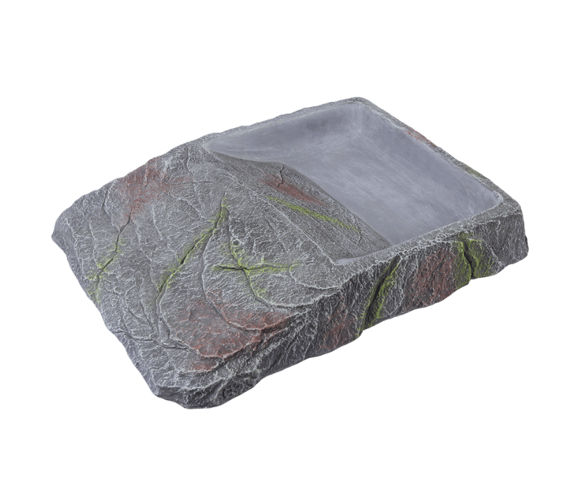 Diese funktionale und dekorative Tränke bzw. Futterstelle von Terra Della ist naturgetreu aus hochwertigem Polyesterharz gefertigt. Dank der schrägen Stufe gelangen Schildkröten sowie andere Tiere wie Salamander oder Einsiedlerkrebse problemlos an Futter oder Wasser. Die robuste Bauweise sorgt für Stabilität im Terrarium, während das natürliche Design sich harmonisch in jede Umgebung einfügt.